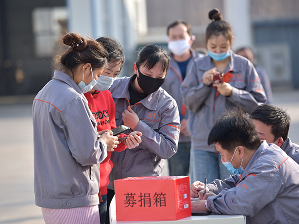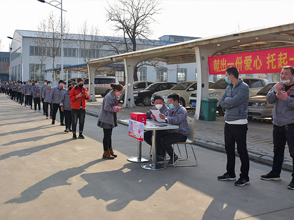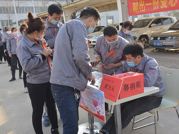 一人有难,大家帮,为困难职工李琦捐款的活动现场